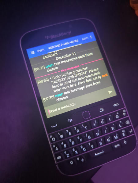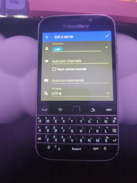 It's also helpful to have another IRC client on your desktop alongside, as typing or copy-pasting text to and from the BlackBerry is often fiddly.